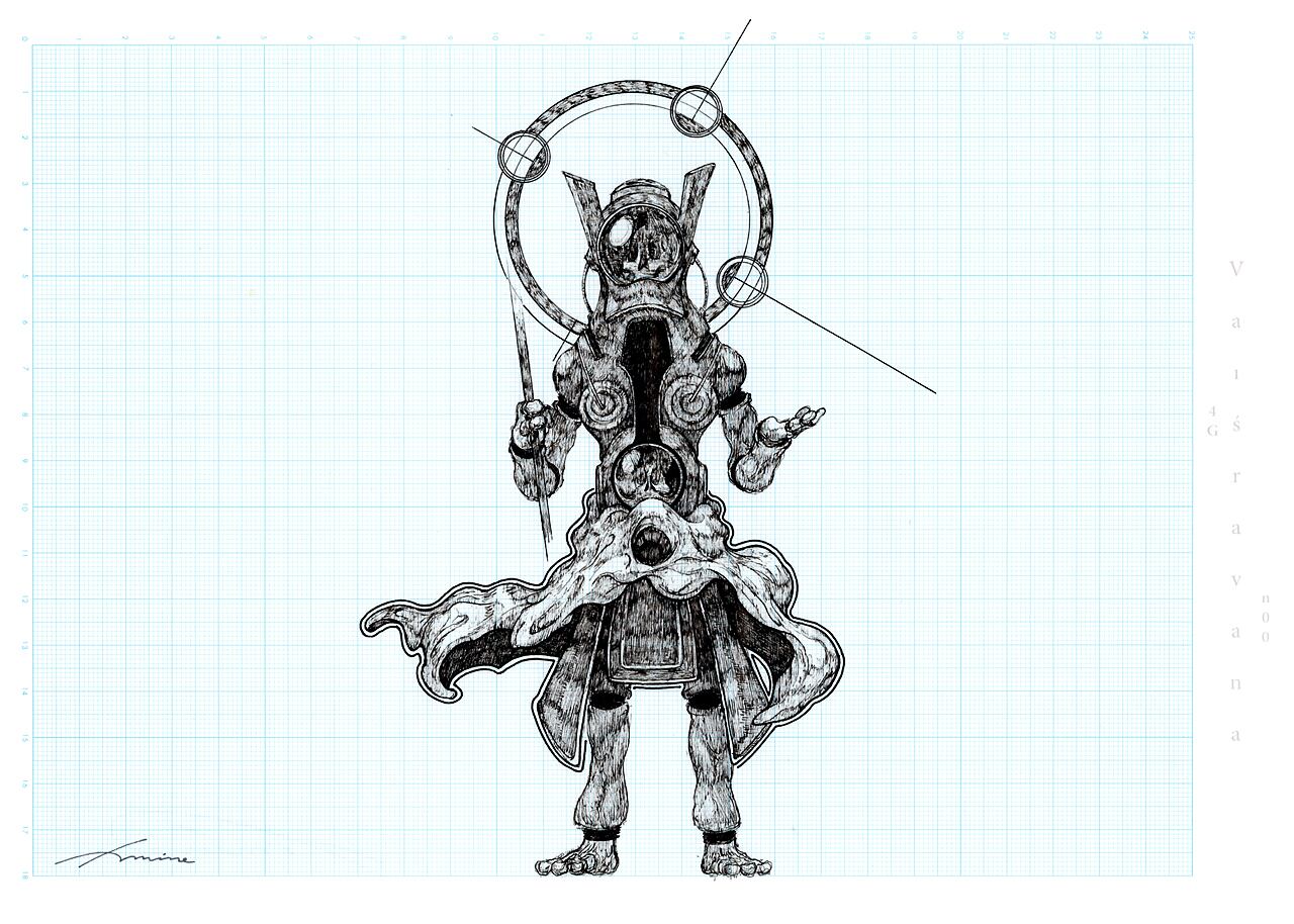 ・方眼紙への手描きとなっています。サインは前面に入っています。